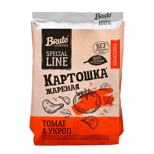 Чипсы картофельные Bruto snacks с томатом и укропом – это хрустящие ломтики натурального картофеля, обжаренные на растительном масле.