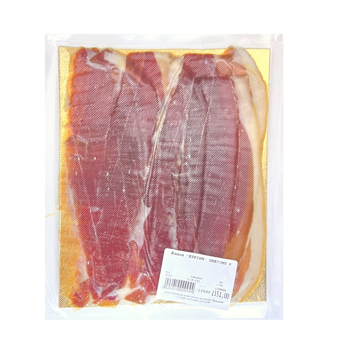 Хамон «ESPINA» ИБЕРИКО с черным перцем нарезка (стоимость указана за 100 гр.)
