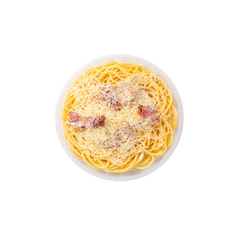 Паста Карбонара — сытное и ароматное готовое блюдо в лучших традициях итальянской кухни. Нежные спагетти сочетаются с насыщенным соусом на основе яиц и сыра, дополненным аппетитными кусочками обжаренного бекона и щепоткой чёрного перца.