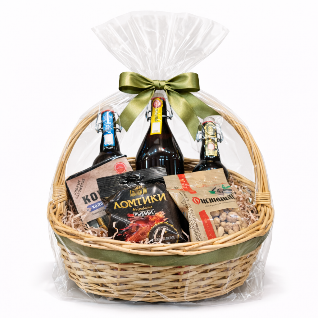 Подарочная корзина, которая подойдёт как для мужчины, так и для женщины, ценящих качественное пиво и продуманные гастрономические сочетания. Отличный вариант для праздника, дня рождения или уютного вечера в хорошей компании.