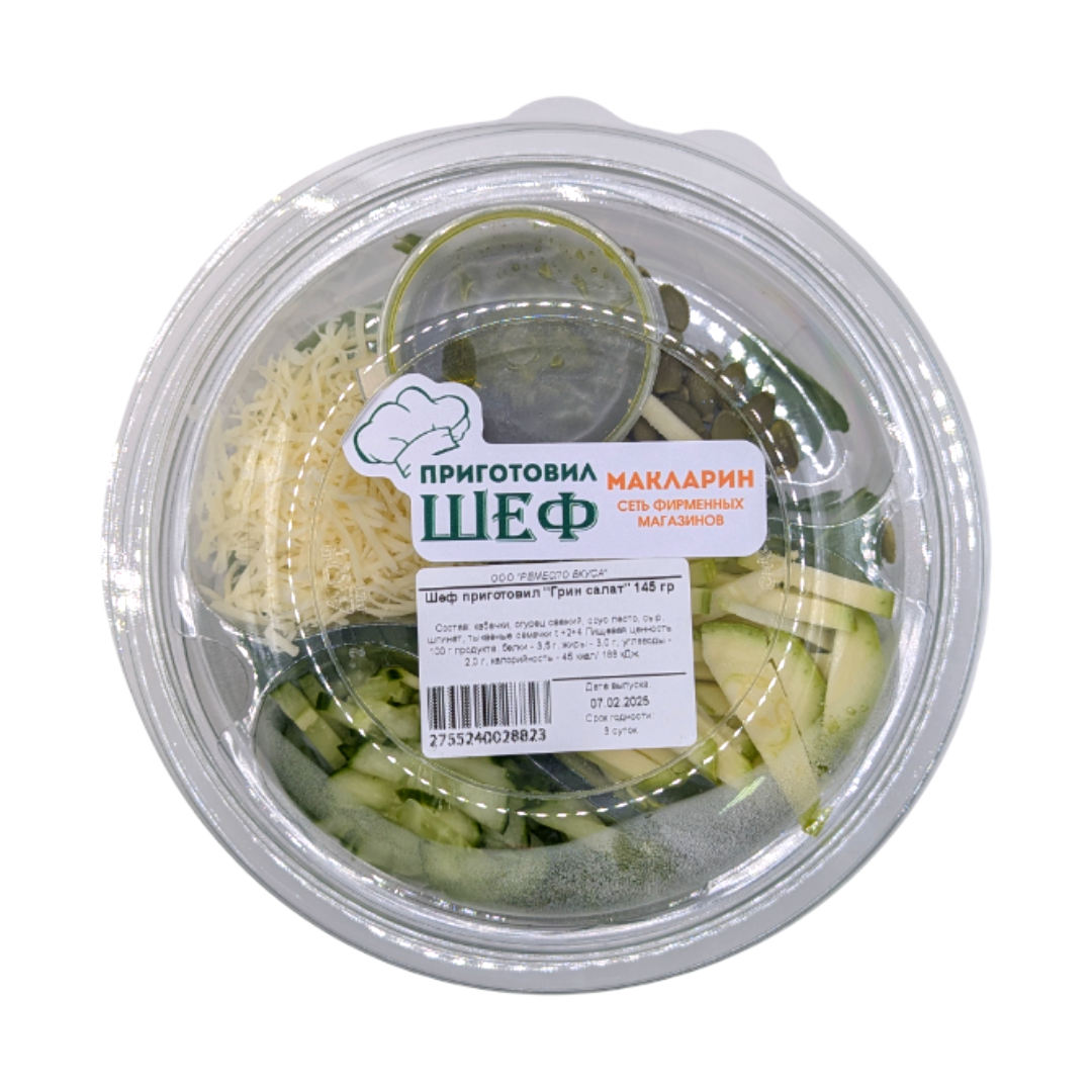 Откройте для себя свежесть и яркость с нашим уникальным Грин салатом от шефа! Этот легкий и питательный салат сочетает в себе свежие кабачки и хрустящие огурцы, создавая идеальную основу для здорового обеда или легкого ужина.