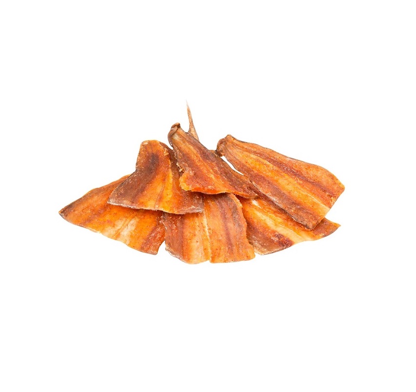 Янтарной рыбой рыбаки называют минтай за характерную пятнистую раскраску чешуи, а в засоленном и засушенном виде продукт носит название «спинка янтарная с перцем». Это кушанье вполне годится для легкого перекуса и без сопровождения бокалом пива.